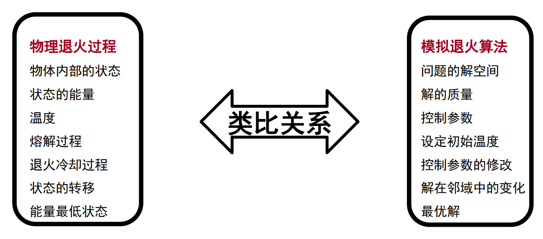 模拟退火算法:采用类似于物理退火的过程,先以较大步长行走,然后逐渐减少步长,最终达到物理基态。本质是通过温度来控制算法接受劣解的概率,以有效地跳出局部最小。