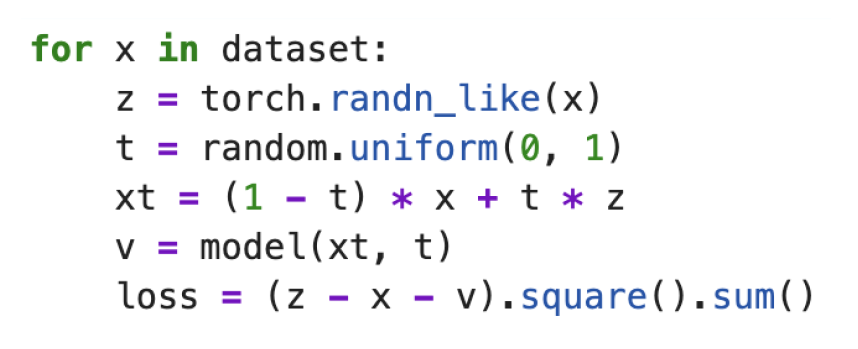 $$ L = | f_\theta(x_t, t) - v |_2^2. $$
