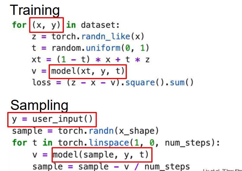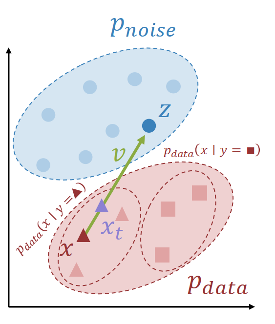 $$ v^y = f_\theta(x_t, y, t) $$