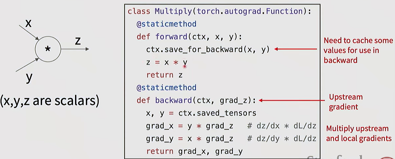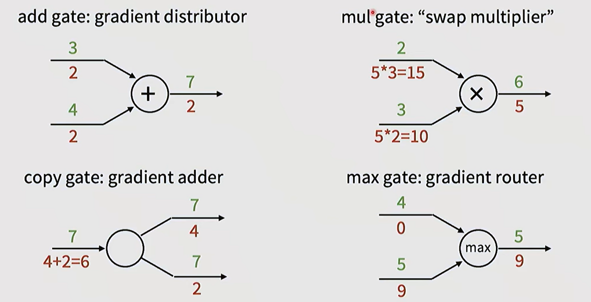 - Based on the chain rule. the gradient of each parameter is the multiplication of its “upstream gradients”.