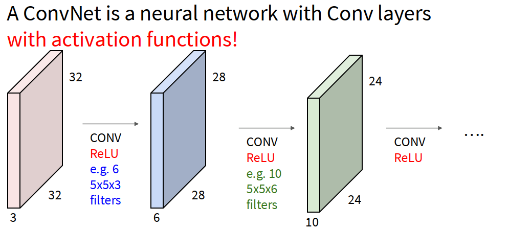 - Between the Conv layers, we should add activation functions after Conv function (which is linear).