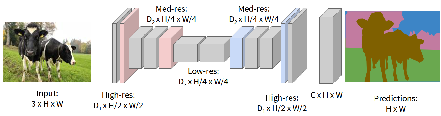 High-level idea: use a network made of convolutional layers so that we predict pixel labels for all positions in parallel.