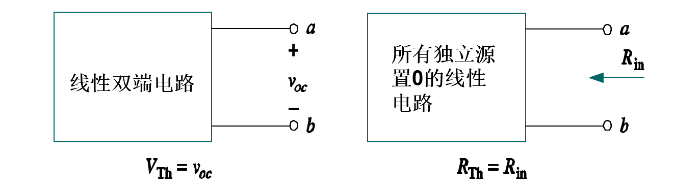 - 电压源 $V_{th}$ 为端子开路电压