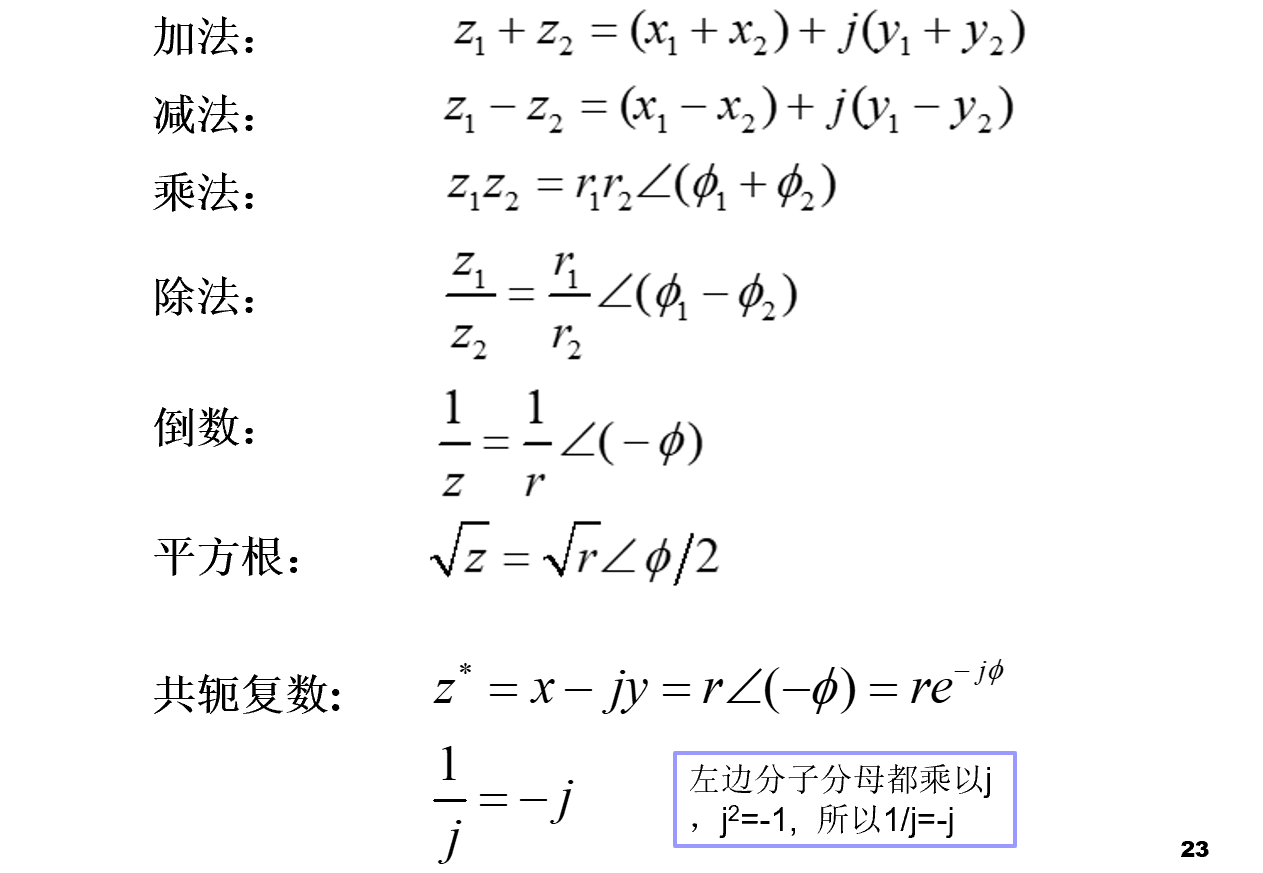 表达方式:$z = x + jy = r \angle \upphi = r e^{j\upphi}$,分别对应坐标式、极坐标式、指数式