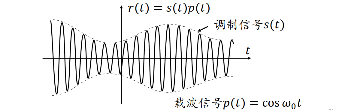 - 信号的相乘,可以视作一个信号(调制信号)控制另一个信号(载波)的幅度