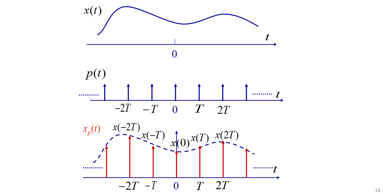 - 频域上:$\displaystyle X_p(j\omega) = \frac{1}{2\pi} X(j\omega)*P(j\omega)$