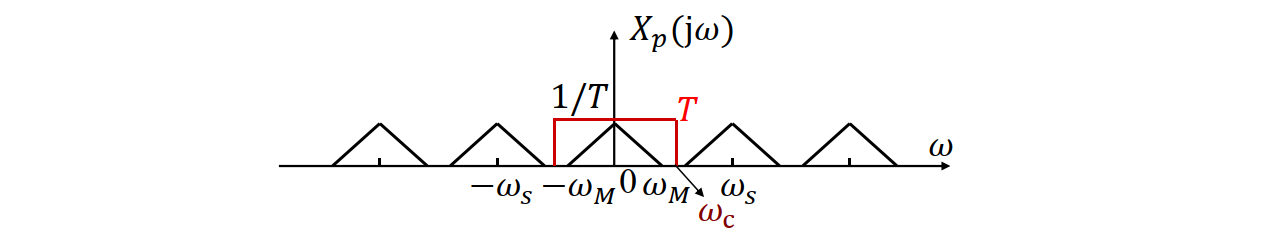 因此,我们要求 $X_p(j\omega)$ 周期性延拓的时候不能产生频谱混叠。如果最高频率分量为 $\omega_M$,那么采样间隔应当满足 $\omega_s > 2 \omega_M$.