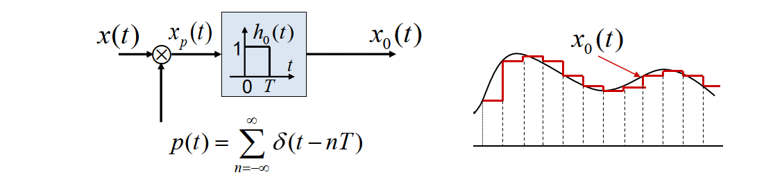 零阶保持采样:我们在理想采样后,级联一个零阶保持系统,这样就能让离散的信号连接起来。