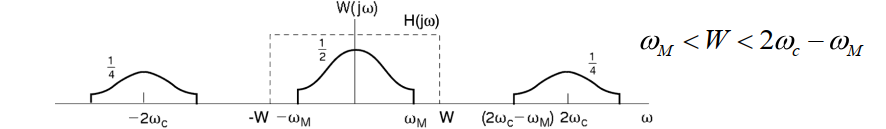 低通滤波器的截止频率 $W$ 满足:$\omega_M < W < \omega_c - \omega_M$.