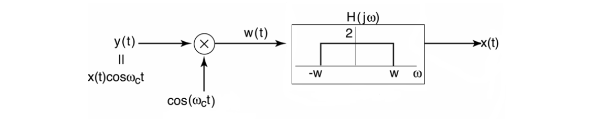 $$w(t) = y(t) \cos \omega_c t = x(t) \cos^2 \omega_c t = \underbrace{\frac{1}{2} x(t)}{目标信号} + \underbrace{\frac{1}{2} x(t)\cos 2 \omega_c t}{干扰信号}$$