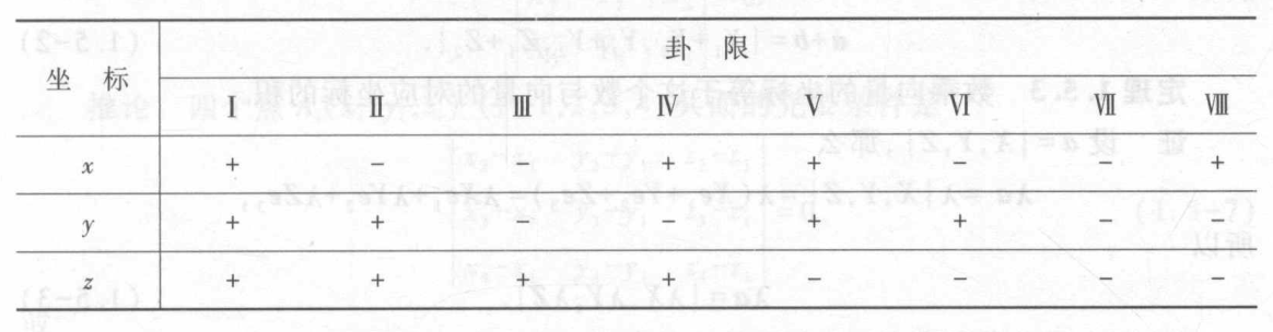 卦限:由坐标面分成的八个区域($z$ 先正后负,$x, y$ 和平面的象限顺序一样)