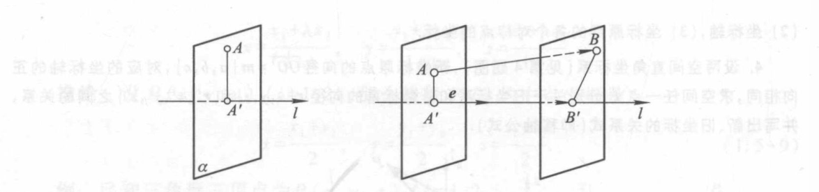点在轴上的射影:过 $A$ 做轴 $l$ 的平面 $\alpha$,那么 $\alpha$ 与 $l$ 的交点 $A’$ 就是 $A$ 在 $l$ 的射影。