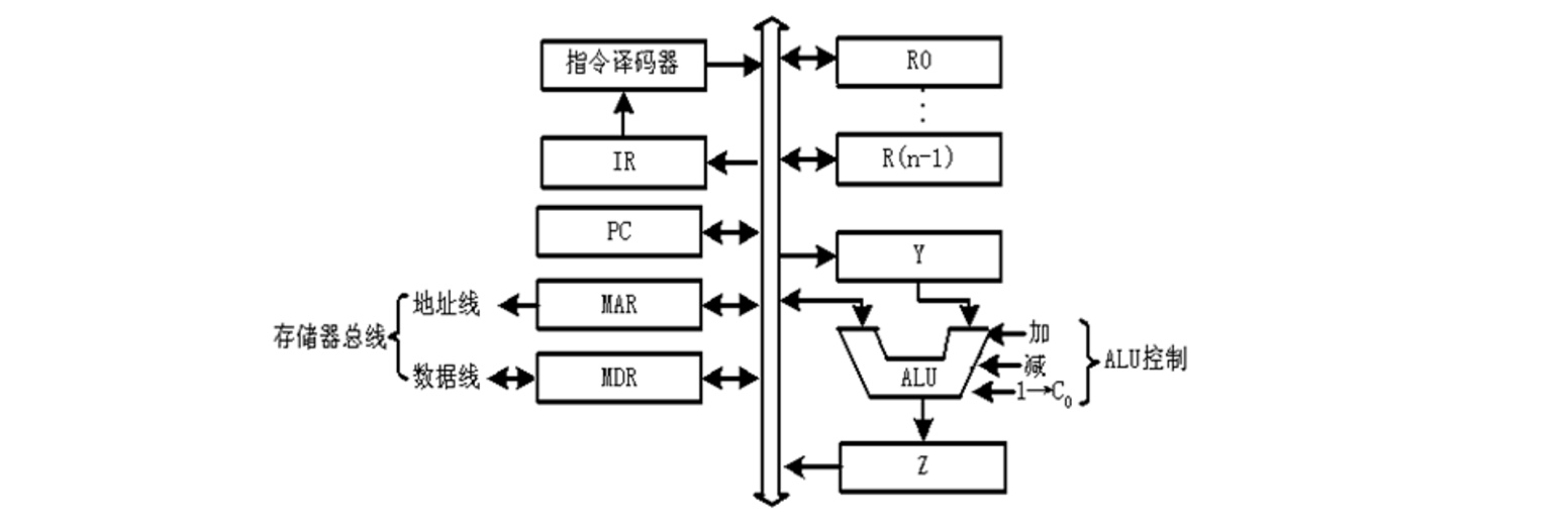 - 所有寄存器、ALU、PC、IR 等共用一条数据总线。