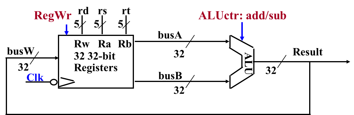 ALUctr = add / sub. - RegWr (Register Write Enable,寄存器写使能信号):告诉寄存器堆是否要在本周起进行写操作。在这里
