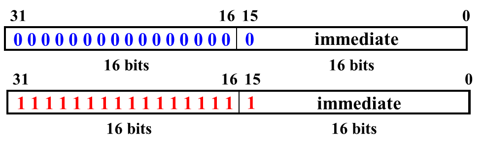 - SignExt(Sign Extension,符号扩展):高 16 位全部补符号位(