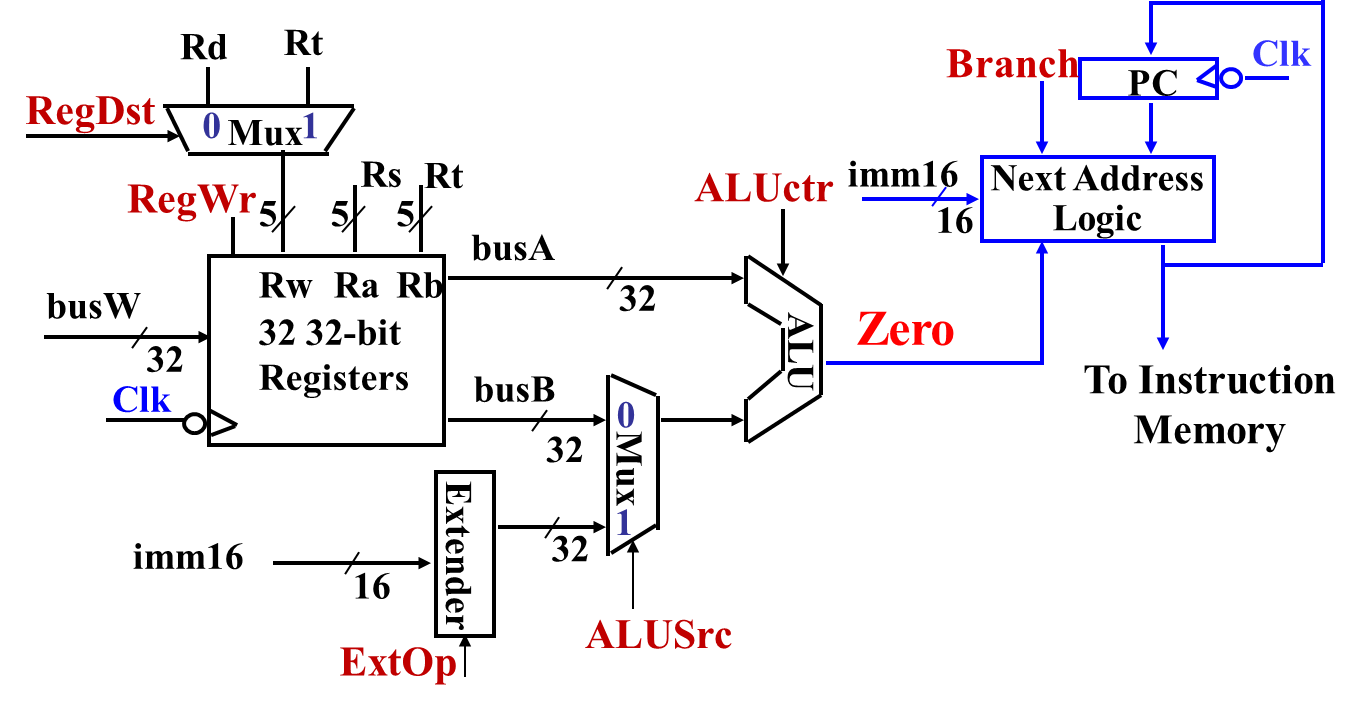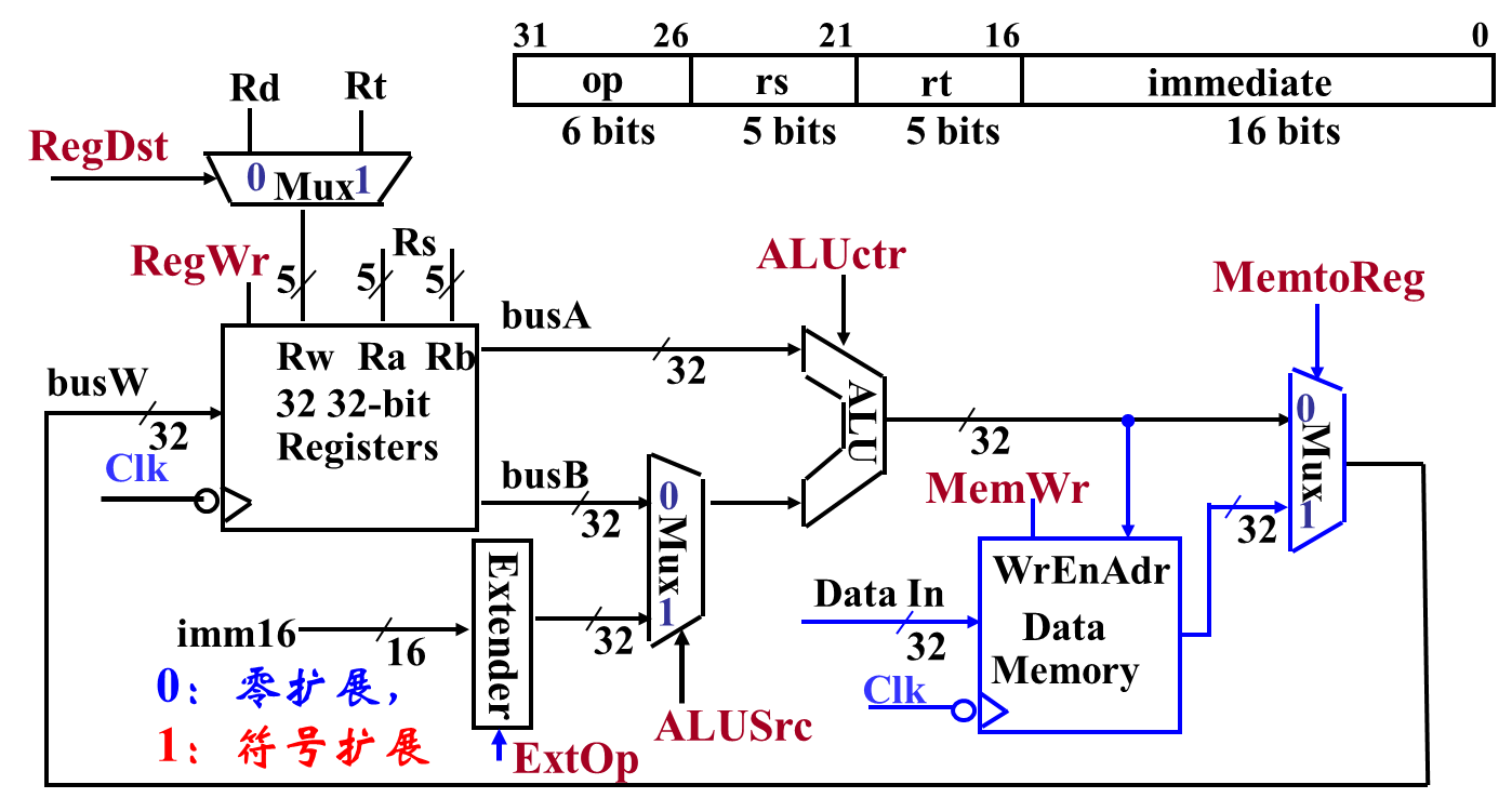 | ExtOp | Extension Operation | SignExt(imm16) | 0 → 零扩展 (ZeroExt) 1 → 符号扩展 (SignExt) | 1 |