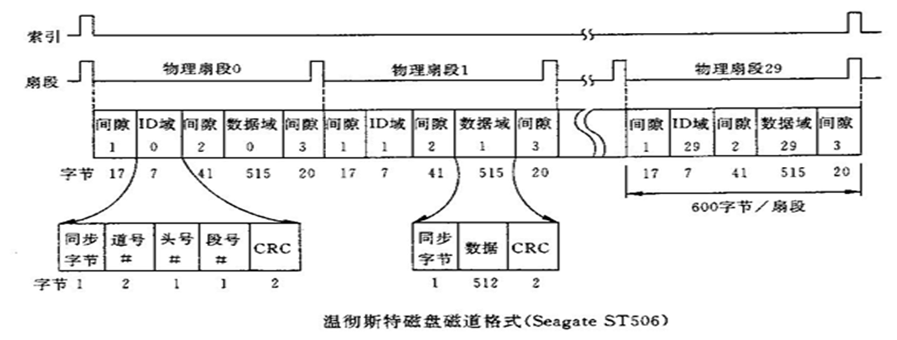 - 步进电机控制读写磁头定位到每个磁道
