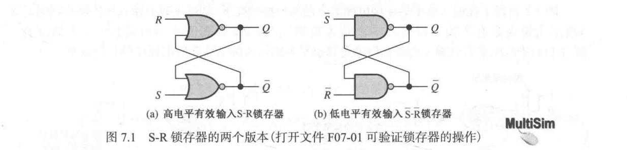 - 高电平有效输入 $S - R$ 锁存器:由两个交叉耦连的或非门组成,每个门的输出都连接到另一个门的输入上。