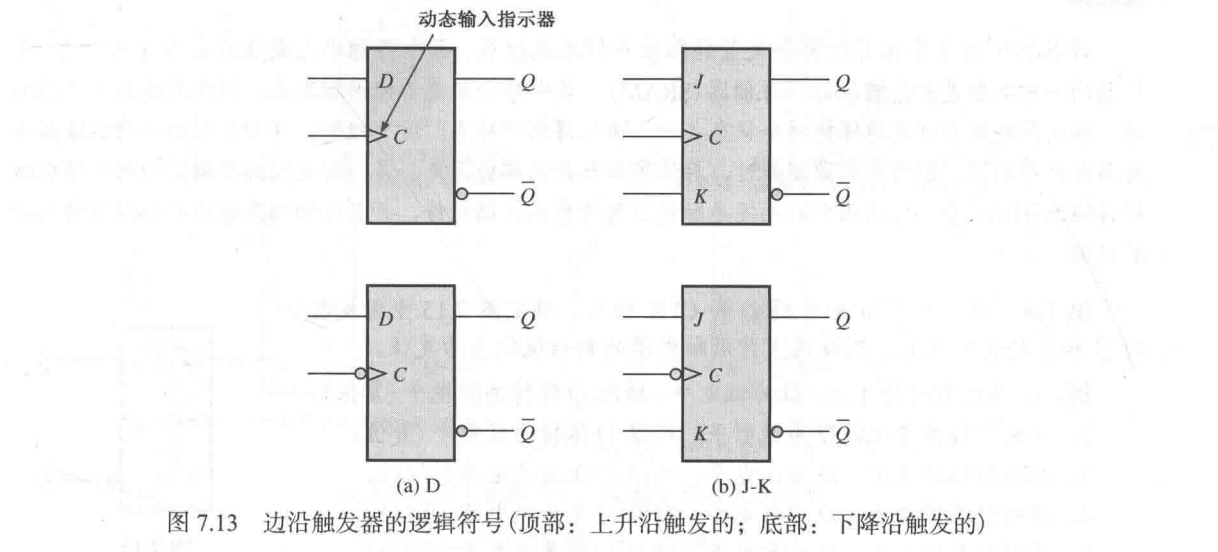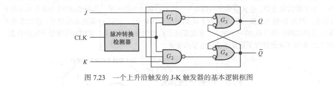 - 边沿触发的 $J-K$ 触发器:使得 $J-K$ 输入是同步输入。只有时钟的触发边沿到来时,$J-K$ 输入才能响应。